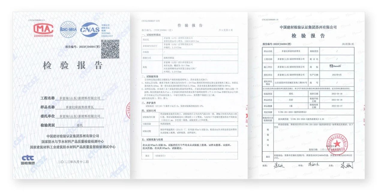 波形瀝青瓦使用礦植物纖維和瀝青作為主要的原材料,瀝青通過高溫浸漬后填滿礦植物纖維中的孔隙,與礦植物纖維融為一體。瀝青是優(yōu)秀的防水材料,多富瑞瓦材的瀝青含量≥40%,吸水率≤10%,這使得瓦材擁有了優(yōu)異的防水性能。加上其他原材料的配比添加,瀝青可以穩(wěn)固地發(fā)揮其防水效果,不會(huì)因風(fēng)吹日曬或切割安裝導(dǎo)致瀝青脫落。