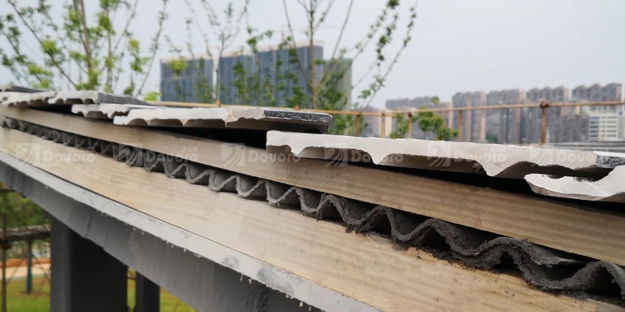 波形瀝青防水板采用了與波形瀝青瓦同樣的防排結(jié)合設(shè)計(jì)。遇到極端降雨天氣,一旦屋面瓦材發(fā)生滲漏,雨水也會(huì)順著波形瀝青防水板從上往下排出屋面,將屋面漏水的概率降至最低。
